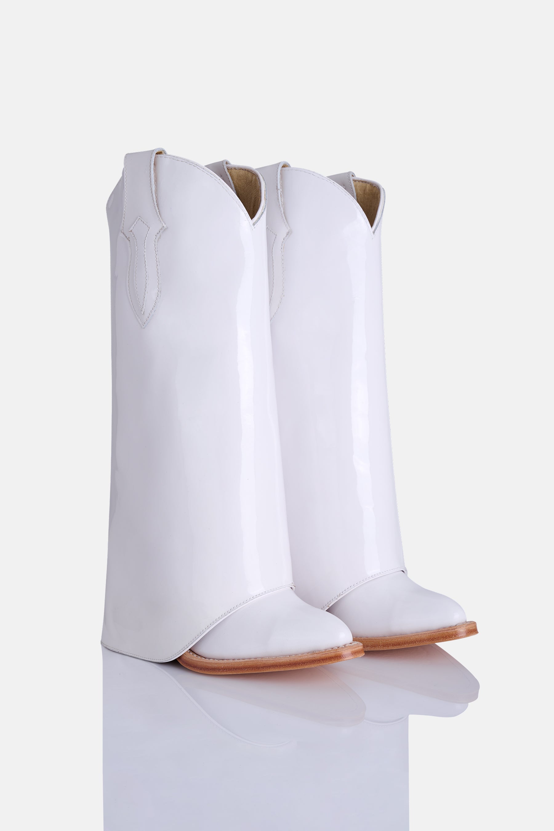 SARAVIA MID WHITE PATENT LEATHER COWBOY BOOT -LIMITED EDITION-