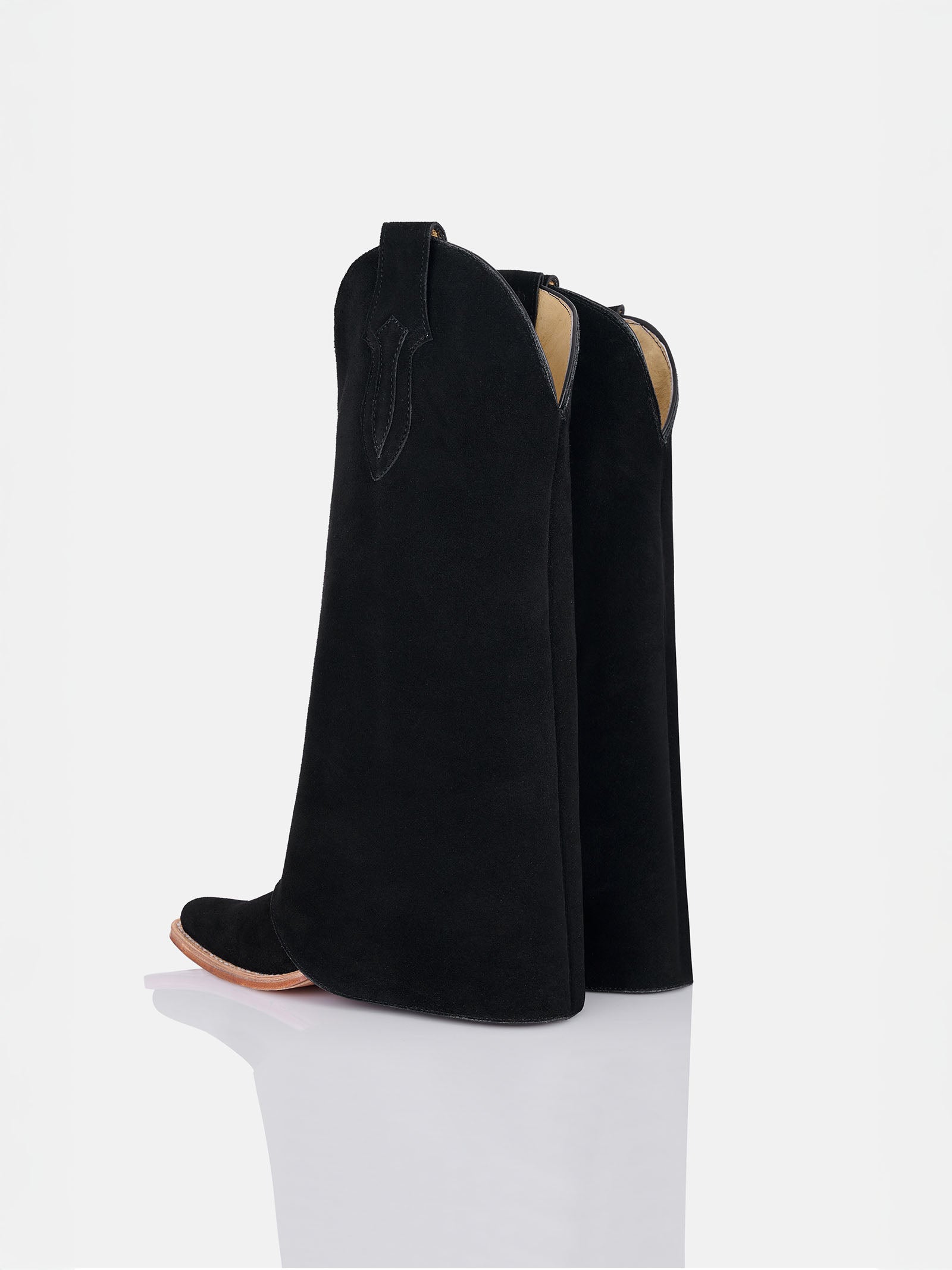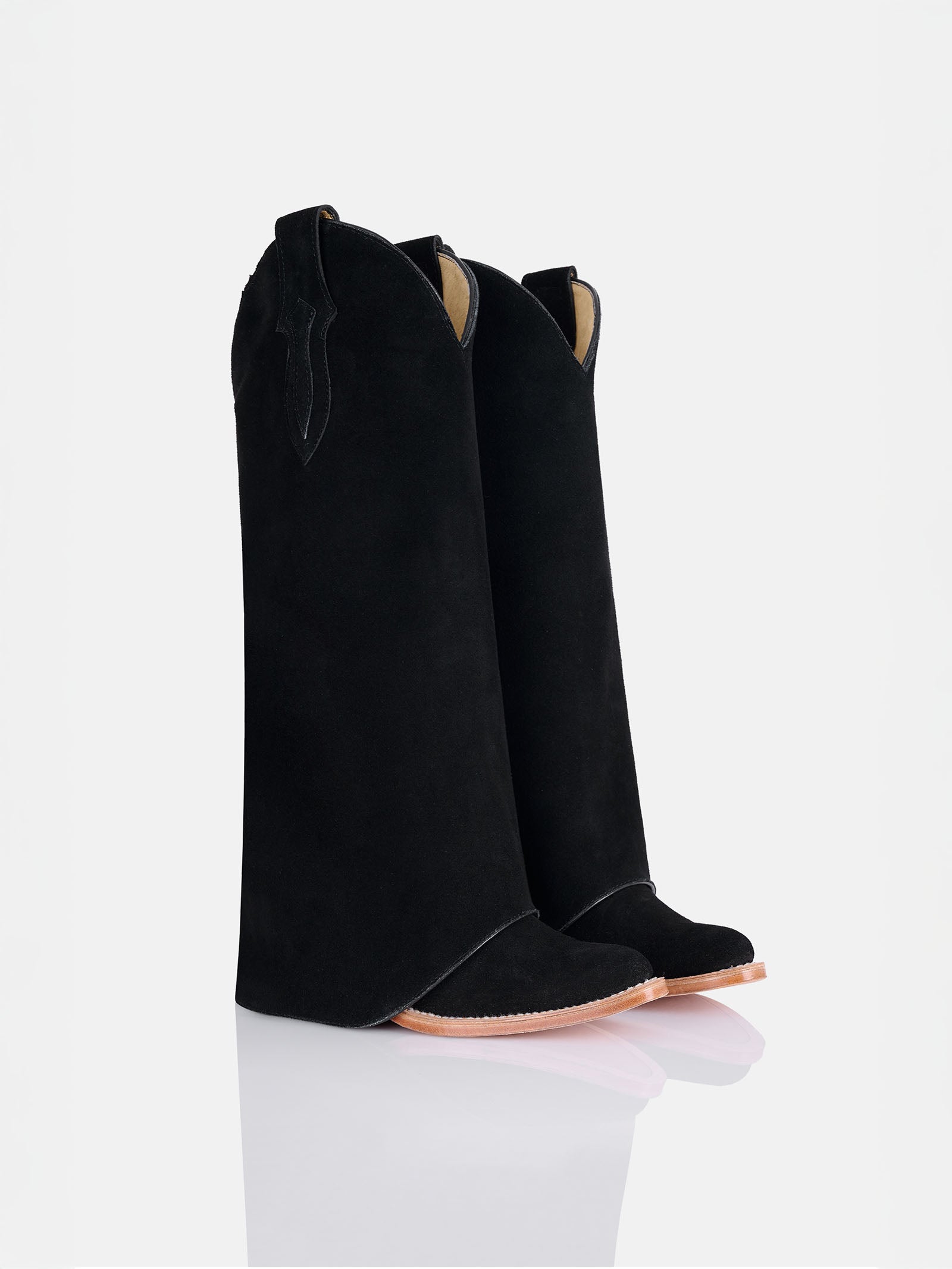 Timeless and versatile, these tall boots are crafted in supple black suede for a soft, refined texture. Designed with a sleek silhouette and subtle Western-inspired details, they pair effortlessly with everything from denim to tailored pieces.